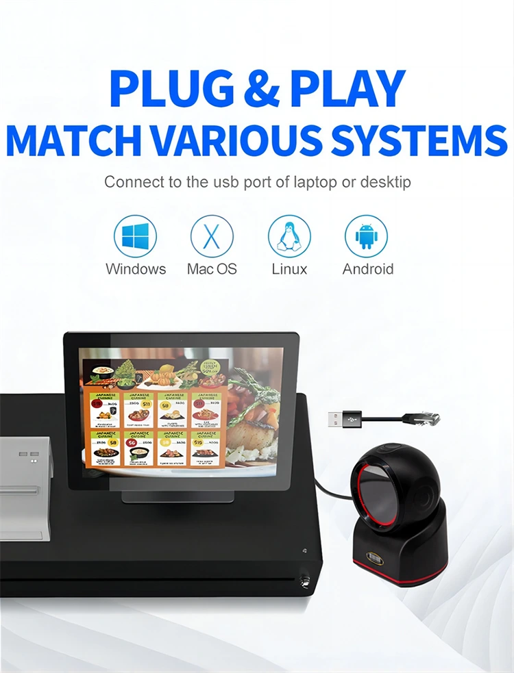 Коммерциялық бөлшек саудада және тиімді есептегіш операцияларда таптырмас құрал үлкен сканерлеу терезесі бар ықшам дизайн болып табылады. Операторларға оны ұстаудың қажеті жоқ; жылдам анықтау үшін оларға өнімнің штрих-кодын тереземен туралау қажет. Бұл оператордың қолын босатады және сканерлеу тиімділігін арттырады. QR-код штрих-код сканері жылдам, қолсыз және тұрақты болып табылатын автоматты датчик пен қолмен іске қосу режимдерін қолдайды.