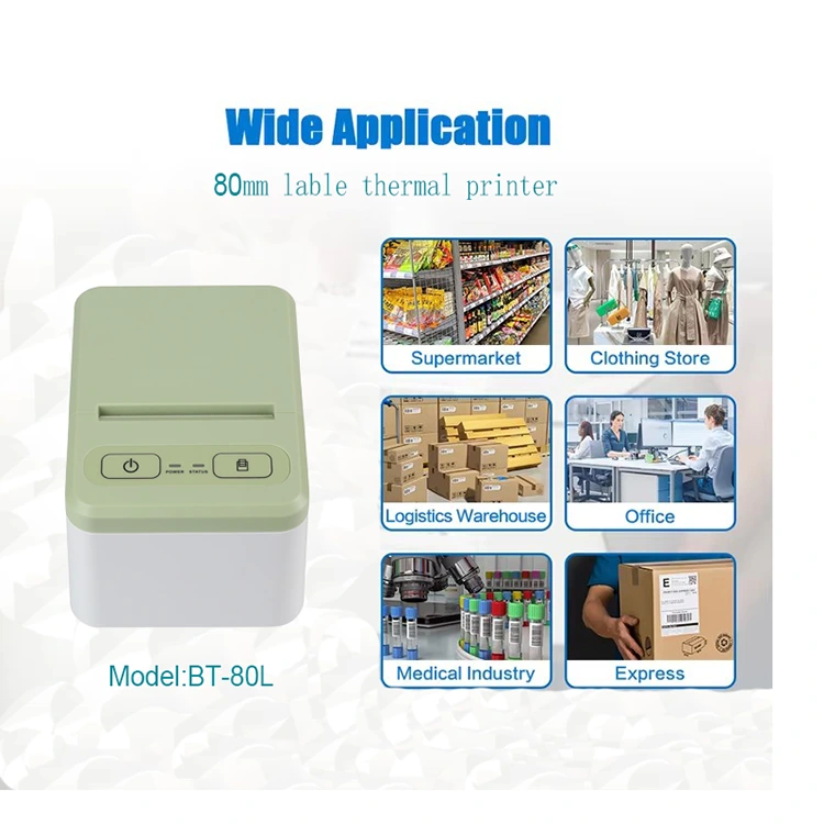 Біздің жоғары жылдамдықты жапсырма принтерімізді пайдалану өте оңай. Ол жұптастырудан кейін бірден басып шығарады және топпен бөлісуді қолдайды. Ол кеңселік құжаттаманы басқаруда, қойма инвентаризациясын таңбалауда, үйді ұйымдастыруда, бөлшек саудада баға белгілерін өндіруде, азық-түлікті басып шығаруда, аурухана пациенттерін сәйкестендіруде және басқа салаларда кеңінен қолданылады.